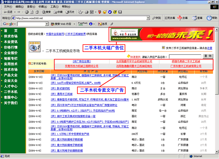價格說明:二手木機大幅廣告:尺寸480×60象素 500元/月; 二手木機專賣文字廣告:1000元/年